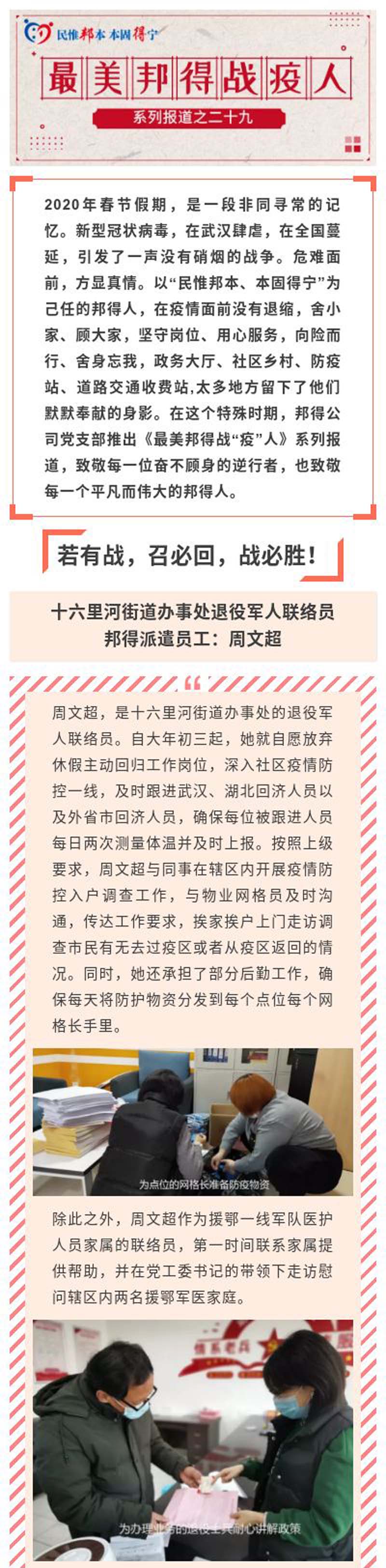 最美邦得戰“疫”人 — 系列報道之(二十九)