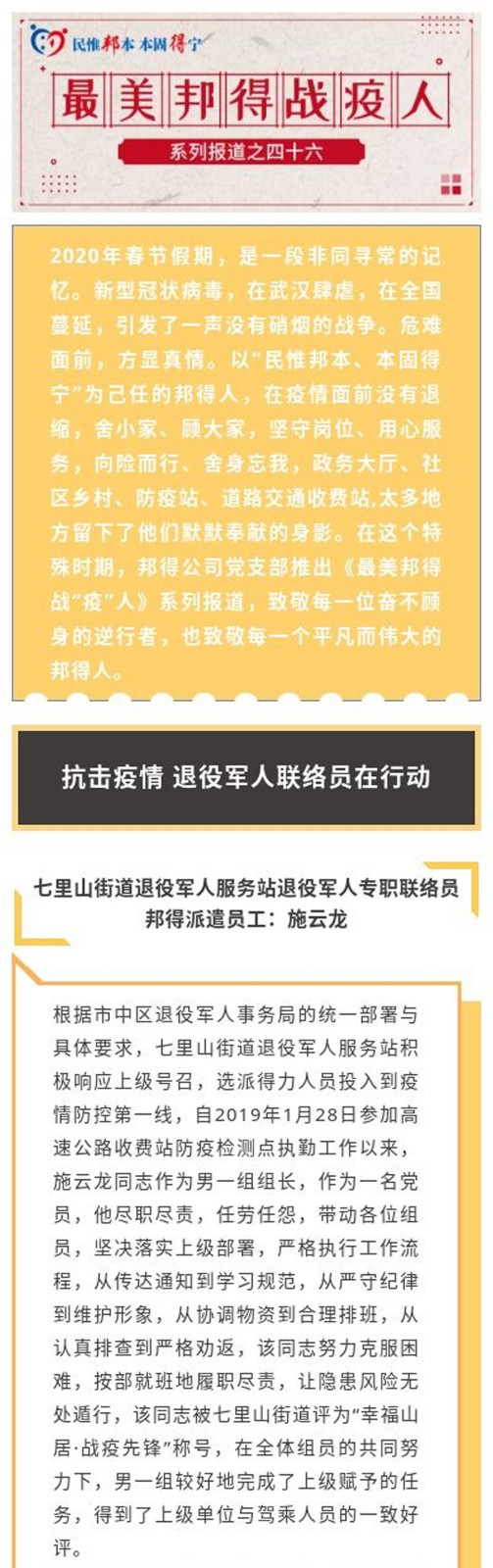 最美邦得戰“疫”人—— 系列報道之(四十六)